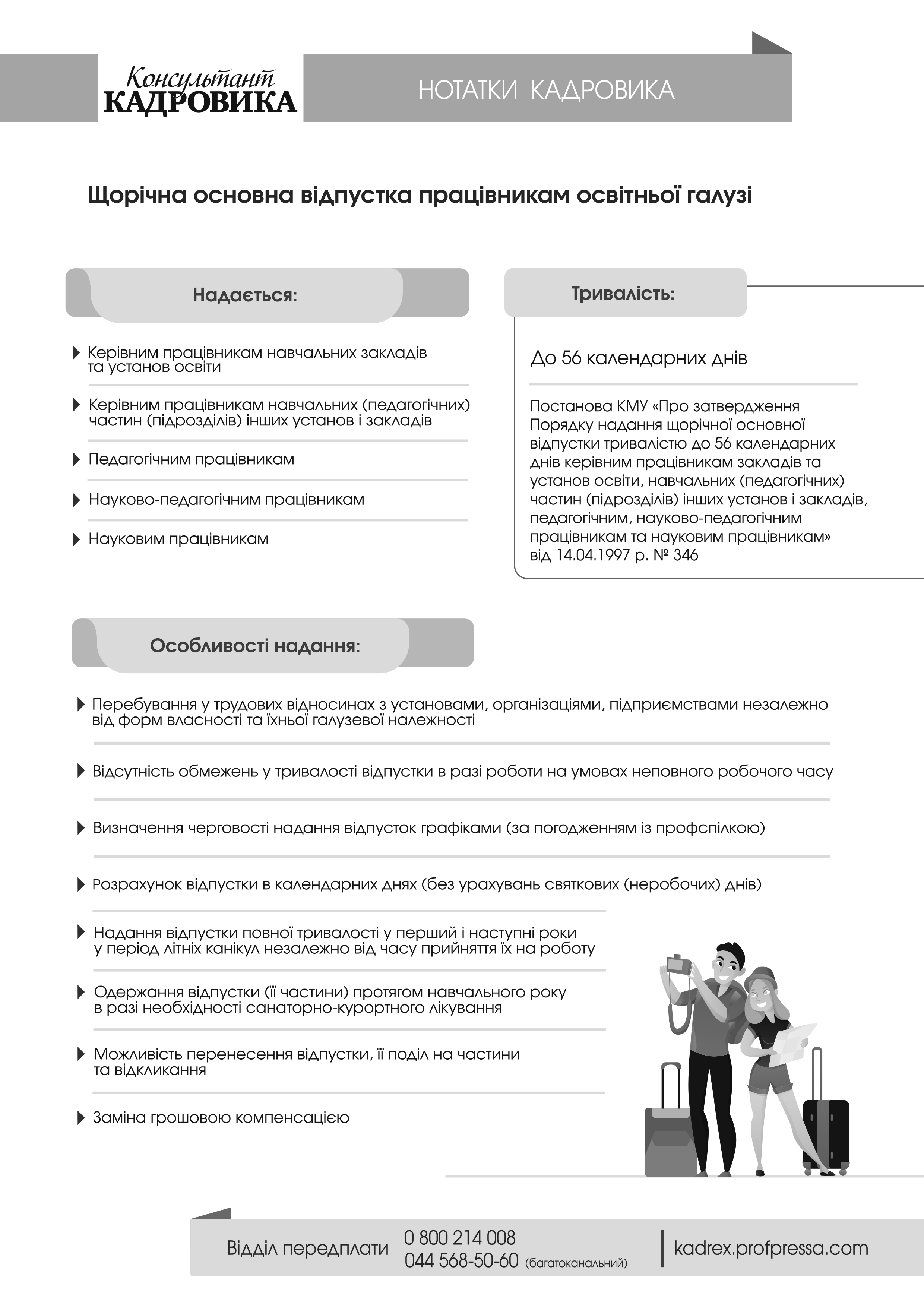 Нотатки кадровика. Щорічна основна відпустка працівникам освітньої галузі