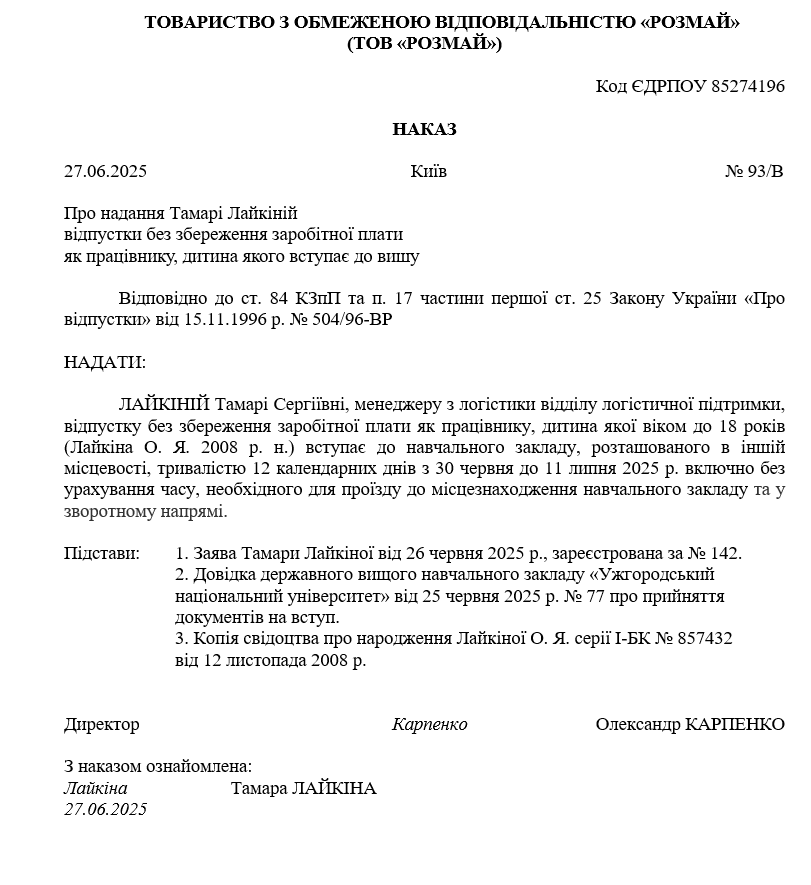 За наявності двох або більше дітей зазначеного віку така відпустка надається окремо для супроводження кожної дитини.