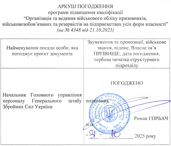 Навчання охоплює ознайомлення з вимогами сучасних нормативних документів, практичними аспектами обліку, а також мобілізаційної роботи, з акцентом на забезпечення кількісного та якісного укомплектування Збройних Сил та інших військових формувань.