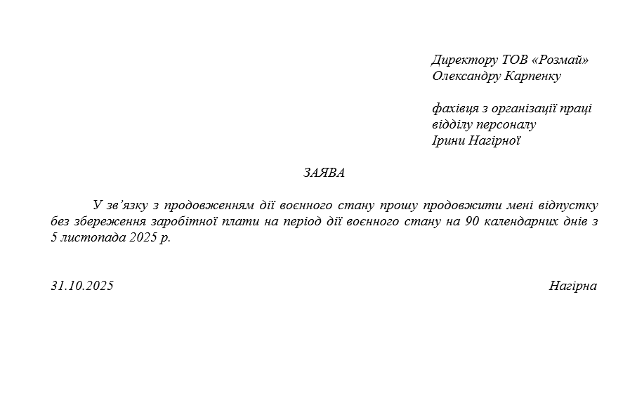 Відпустка може бути продовжена як на весь період дії воєнного стану (90 календарних днів), так і на менший строк.