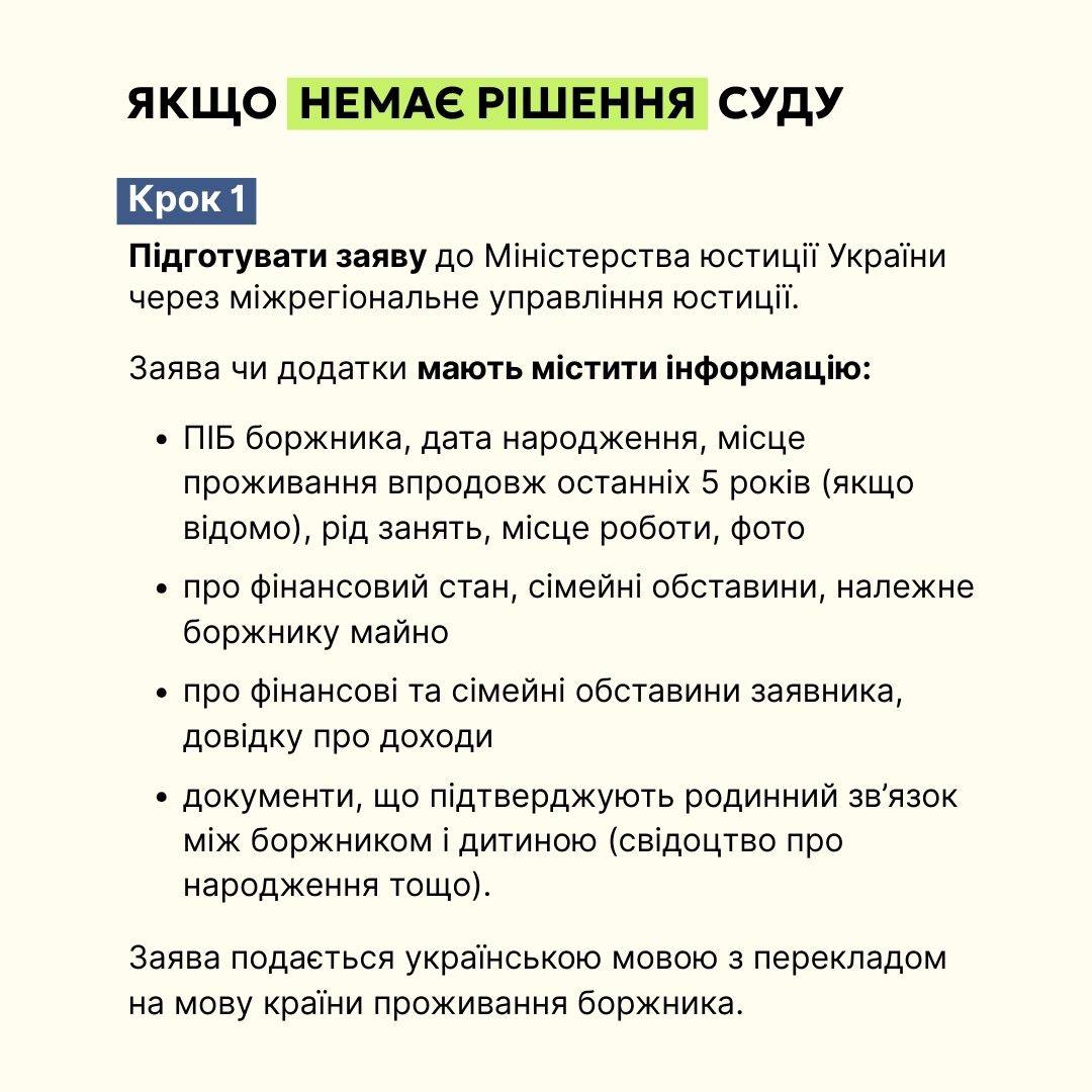 - звернутися до компетентного органу іноземної країни із заявою про встановлення рішення щодо аліментів.