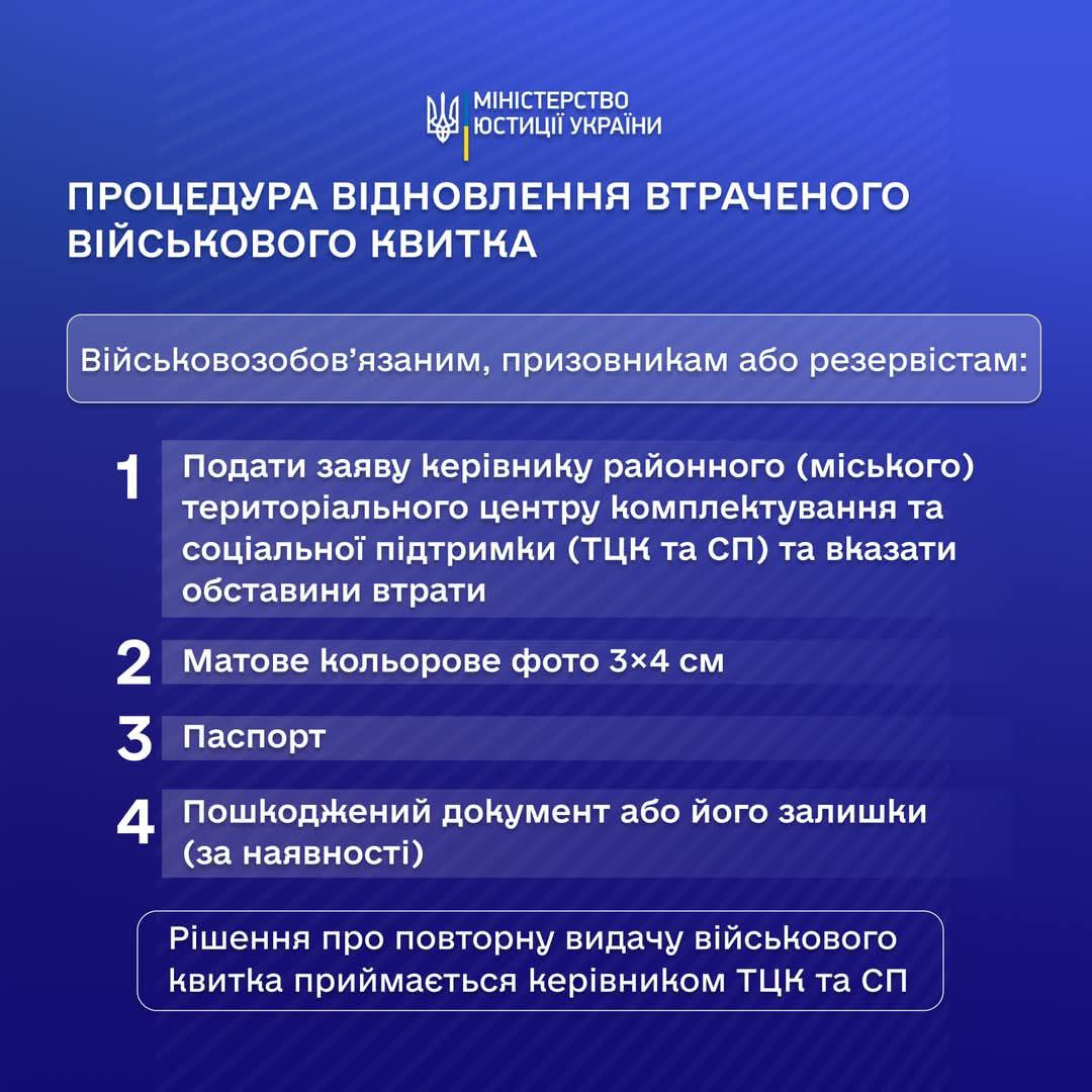 Процедура відновлення втраченого військового квитка