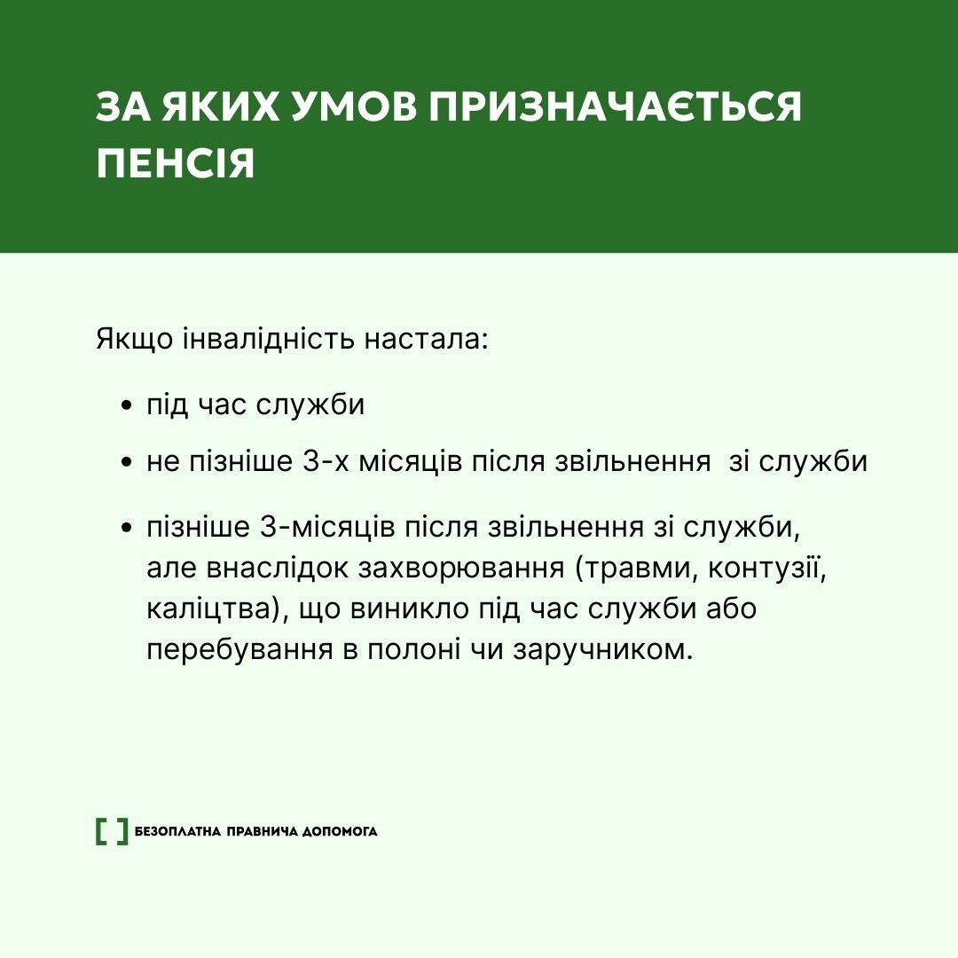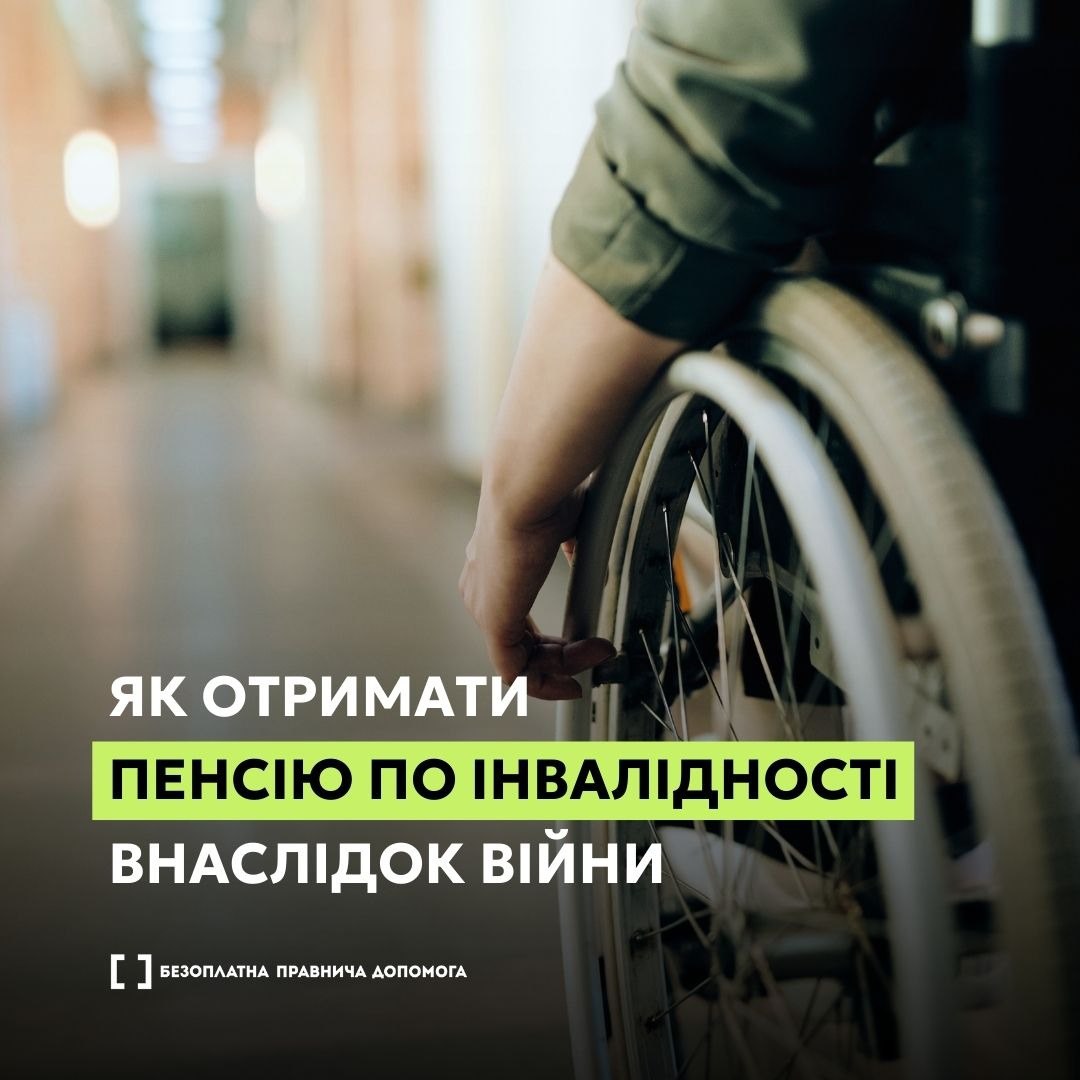 Як військовому оформити пенсію по інвалідності внаслідок війни — в інфографіці від Безоплатної правничої допомоги.