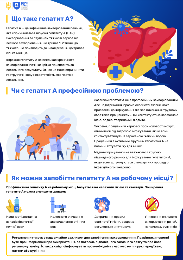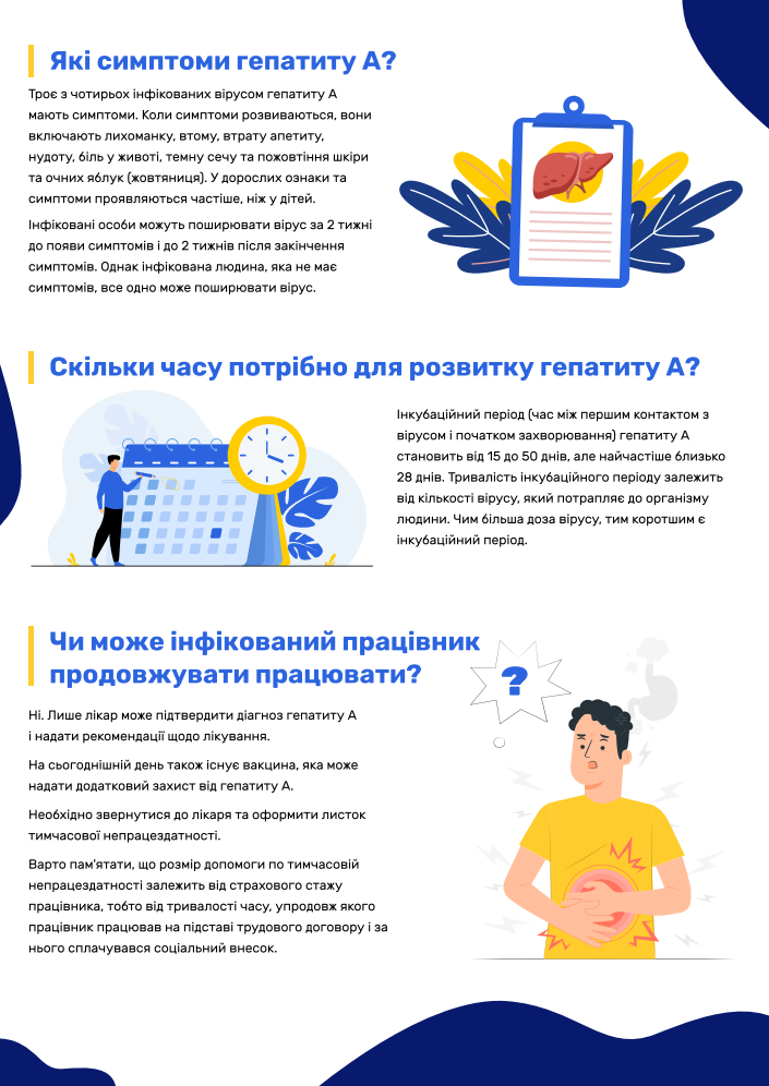 Гепатит А — це інфекційне захворювання печінки, яке спричиняється вірусом гепатиту А (HAV). Захворювання за ступенем тяжкості варіює від легкого захворювання, що триває 1-2 тижні, до тяжкого, що призводить до інвалідизації, яка триває кілька місяців. Інфекція гепатиту А не викликає хронічного захворювання печінки і рідко призводить до летального результату. Однак може спричинити гостру печінкову недостатність, яка часто є летальною.