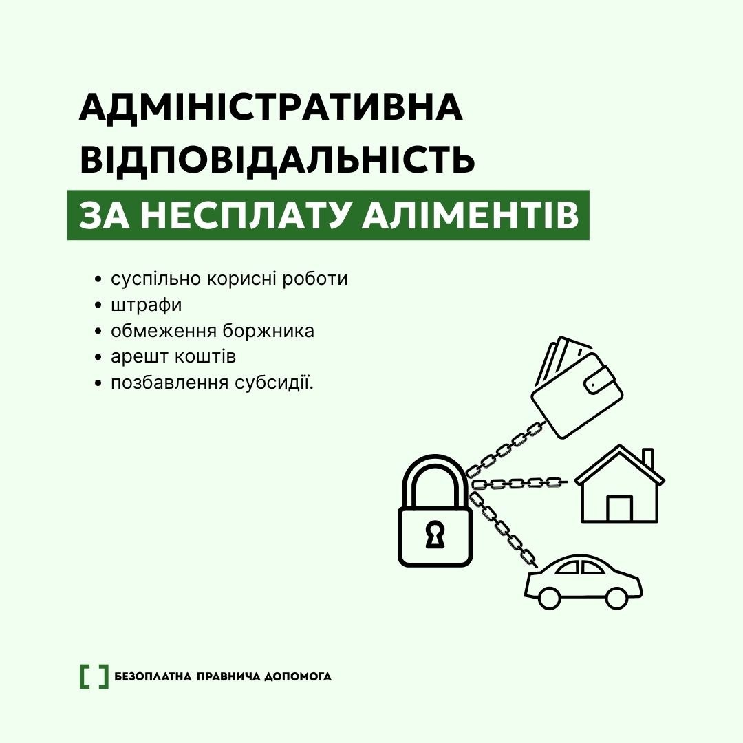 Адміністративна відповідальність за несплату аліментів передбачає суспільно корисні роботи, штрафи, обмеження боржника, арешт коштів і навіть позбавлення субсидії. Щоб притягнути боржника до відповідальності, варто звернутись до виконавчої служби.