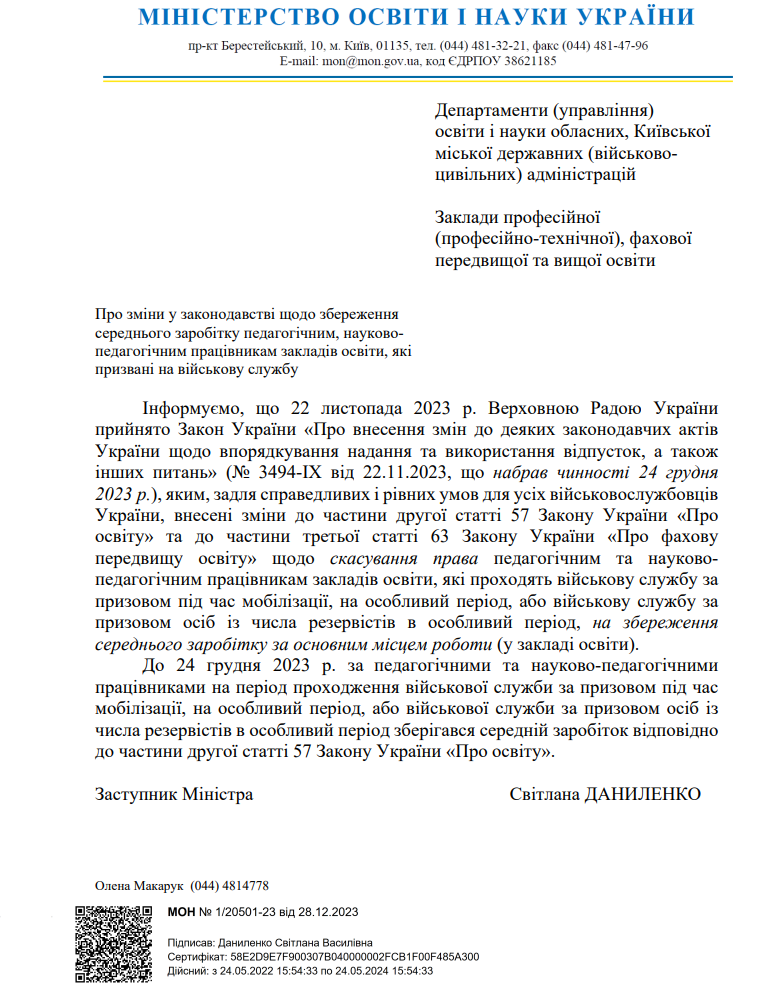 МОН інформує про скасування виплати середнього заробітку мобілізованим освітянам