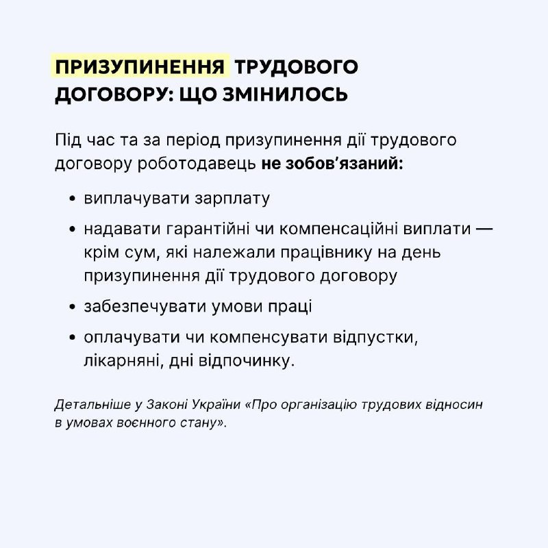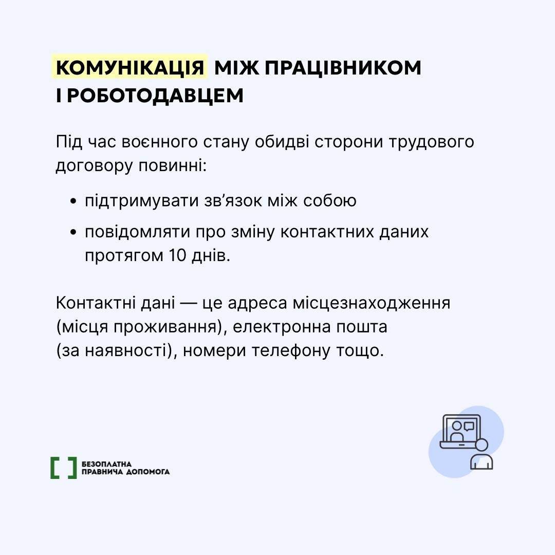 Трудові відносини в умовах воєнного стану мають особливі правила. Зокрема, у червні цього року змінились правила призупинення трудових договорів, порядок комунікації між працівником і роботодавцем та вимоги щодо оновлення контактних даних.