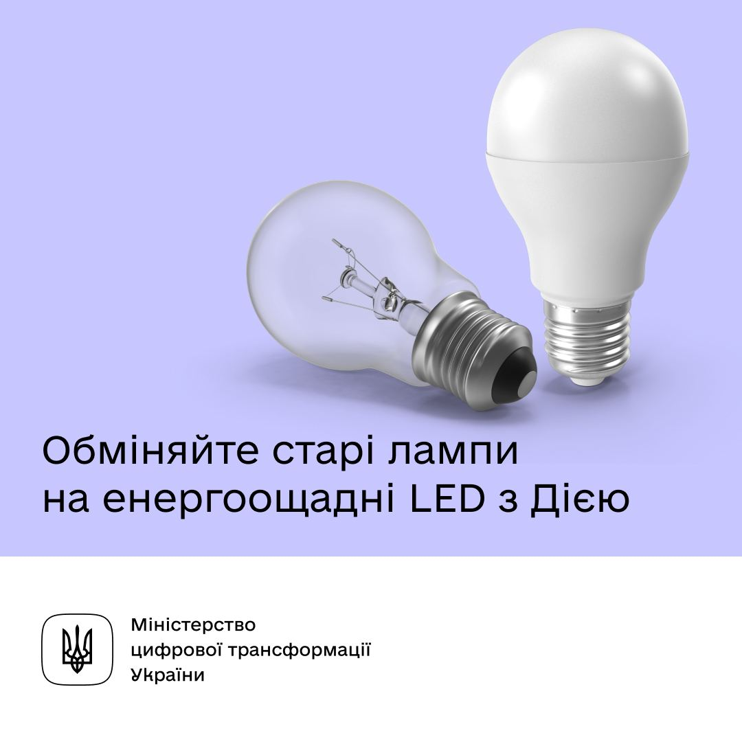 Нова послуга в застосунку "Дія": обміняйте 5 старих ламп розжарювання на 5 енергоефективних LED-лампочок.