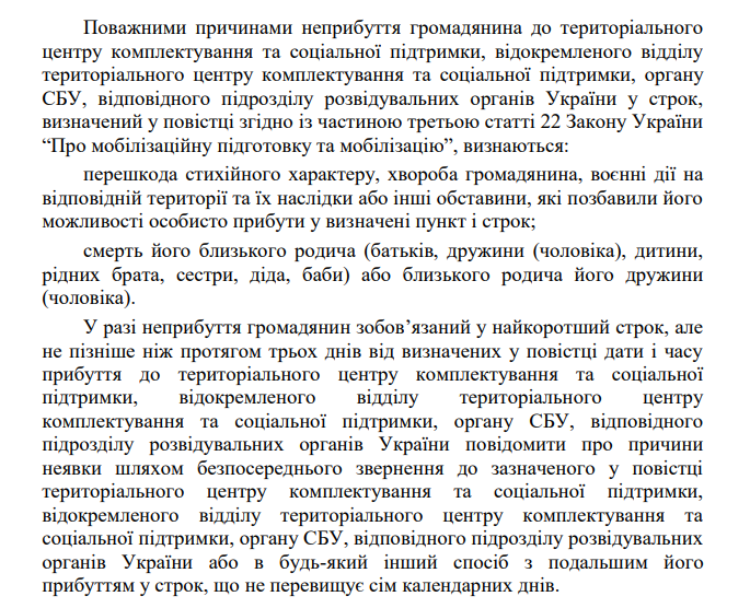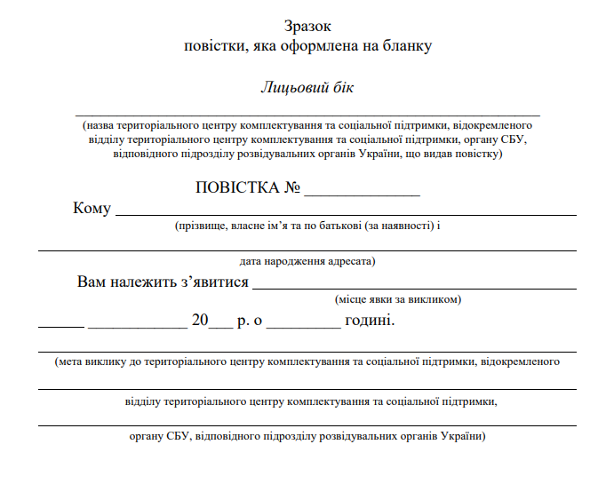 Також КМУ затвердив новий зовнішній вигляд повісток від ТЦК. Вони будуть формуватися або на бланку, або за допомогу електронного Реєстру призовників, військовозобов’язаних та резервістів «Оберіг».