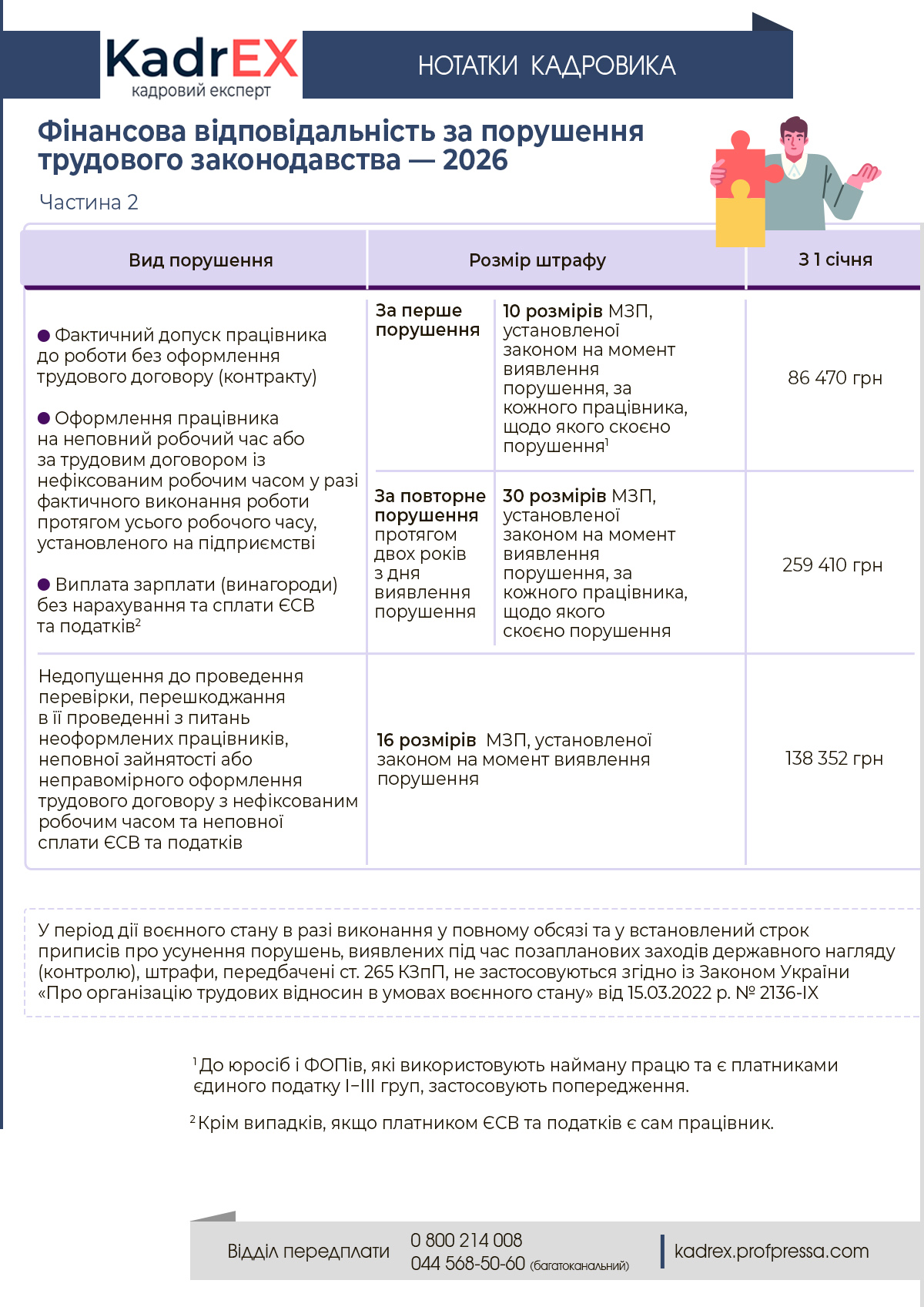 Фінансова відповідальність за порушення трудового законодавства — 2026 ◦ Перевірки та відповідальність ◦ Відповідальність за порушення трудового законодавства 337 29.12.2025